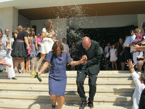 Antes porém à saída da igreja os "noivos" foram brindados com a tradicional chuva de flores (pétalas) a lembrar os 25 anos já decorridos e incentivo para que esse "noivado" generoso e alegre se mantenha e perdure por muitos anos.