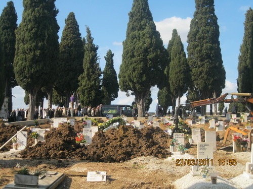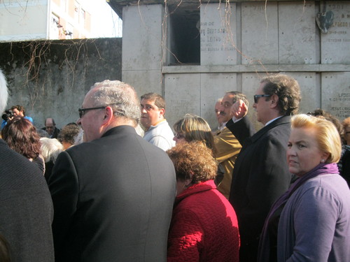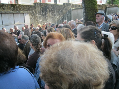 Aqui a multidão anonima muito atenta e pesarosa já no momento em que a urna desce à campa, com as orações de encomendação muito participadas. Um facto a registar pois não é habitual nos funerais alfacinhas....