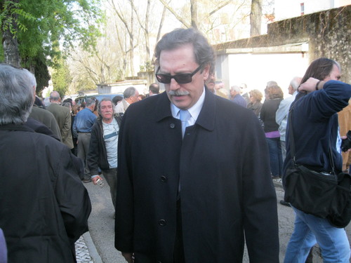 Quer na igreja, quer no cemitério muitas foram as pessoas que se foram despedir deste notável comunicador e homem da Rádio, TV, Teatro, Cinema e Jornalismo desportivo. Aqui alguns dos seus amigos e admiradores mais íntimos esperam perto da cova a chegada do carro fúnebre.