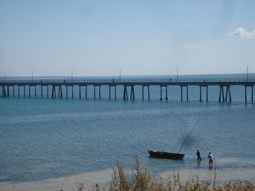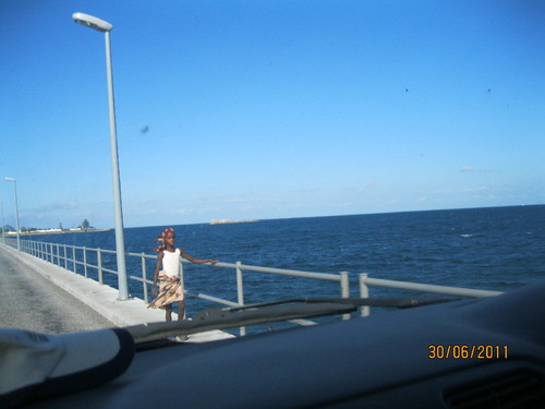 Pela mesma ponte por onde entrei e que liga a ilha com a terra firme me despedi, por Lumbo, da baia do Mussuril