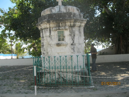 Na ilha não há palmo de terra que a história local ignore e não tenha já assinalado com um monumento ou arrolado e feito registo do que a tradição oral captou. Perto da fortaleza e igreja de NS do Baluarte fica este monumento que na via pública recorda alguém importante que ali morreu ou teve sepultura, creio.
