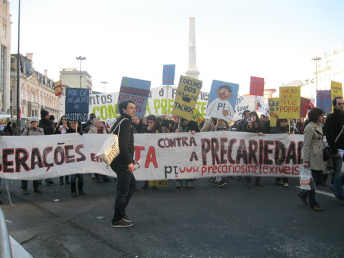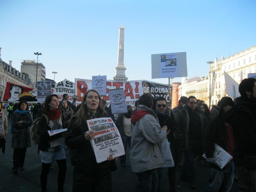Não é meu habito fazer monte nas manifestações de rua, mas como carecia de passar pela baixa e o convite de um amigo me veio aguçar a vontade, lá fui até aos Restauradores ver o cortejo de manifestantes a desfilar do Marquês para a Praça do Comercio, onde terminou. Muito bem organizado, para estas coisas ninguém supera o engenho português, o modo como se organizam os grupos e ordenam as marchas, por vezes até dá a ilusão que o numero de participantes é superior à realidade. Não terá sido bem o caso nesta que hoje observei, visto quando cheguei aos Restauradores, por volta das 16h30, já parte dos manifestastes haviam passado ali, e eu apenas vi e fotografei os grupos que seguiam na cauda, mas como digo, artisticamente bem organizados e ensaiados.... à CGTP!