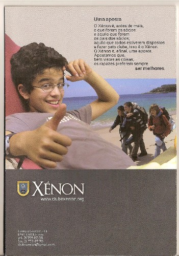 O Xénon é um club para jovens do sexo masculino onde a formação integra do associado é tida como principal preocupação e a intervenção dos pais é pedida e determinante. Sediado no Campo Grande-Lisboa por ali tem passado educados e educadores que enfeudados no espírito de " faz o que deves e está no que fazes" contrastam com uma sociedade carecida de valores morais e cívicos. Neste Ano da Fé, e domingo em que o Evangelho recorda o episódio - entre Jesus e o cego - "que eu veja" lembrei-me abordar os acontecimentos que também contrastam com a baixeza social e cultural daqueles reles animalescos que recentemente violaram e profanaram o site de D. José Policarpo só porque não gostaram que ele disse-se esta verdade: "O Povo a governar da rua é uma corrosão da harmonia democrática". Pensando que retratavam, ficaram eles retratados: esquerdelhos....