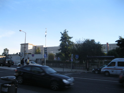 Na passada quinta-feira, dia 22, fui ao HSM visitar um amigo que uma alergia para ali atirou com ele. Embora seja também o hospital da minha área e de vez enquanto ali vá fazer as revisões de rotina, o seu tamanho impede-me de poder memorizar todos os departamentos e serviços de que dispõe. Sozinho era difícil dar com o serviço. Mas agora se voltar a precisar de ir a Dermatologia, já sei que não se entra pela porta principal, mas antes pelo Serviço de Psiquiatria, e ali apanha-se o elevador de acesso. Obra concebida pelo alemão Herman Distel, em 1938, a sua construção teve inicio em 1940, sendo inaugurada a 27 de Abril de 1953. Na altura foi considerada uma das maiores obras do Estado Português (Estado Novo).