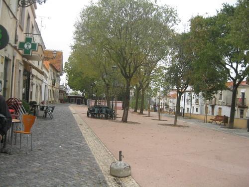 No fim de Missa, saí pelo portão principal, que dá acesso ao Largo do Coreto e Rua Neves Costa, subindo as escaleiras em frente, para no café do Sr. António, tomar a bica; e tirar uma foto às obras de pavimentação que só avançaram, porqueem tempo de eleições é preciso engraxar o Zé.