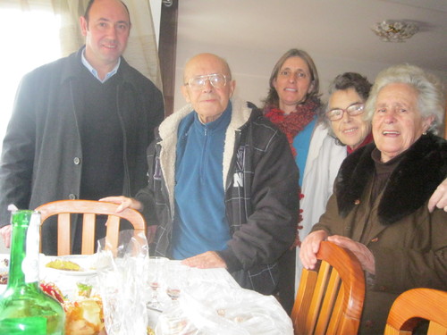 Acompanhado pela irmã, a "menina Augustinha", e conduzido por um casal de primos muito dilectos, D. Maria de Lurdes e Sr Antero Santos, o Sr Padre Ângelo não descansou enquanto não retribuio a nossa visita de à 4 anos atrás, só que as circunstâncias e a brevidade desta visita nem oportunidade deram para percorrer os cantos da casa, como noutras ocasiões acontecia, e nós fazíamos gosto se repetisse neste Dia de Reis de 2013. Fica para outra ocasião assim Deus permita, Mas para já fica pelo menos esta foto a marcar o acontecimento e com os figurantes em realce: o Sr.Antero Santos, o Sr. Padre Ângelo, D. Maria de Lurdes, a anfitriã Maria da Saudade e a menina Augustinha. Nem só o Deus Menino tem visita de reis...